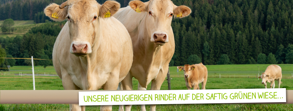 Wenn Sie auf der Suche nach natürlich erzeugtem Rindfleisch von höchster Qualität sind, dann sind Sie bei uns, einem landwirtschaftlichen und traditionsreichen Familienbetrieb inmitten des Wittgensteiner Landes, genau richtig. Auf unserem Hof Eichengut, der in der Nähe von Bad Laasphe in einem beschaulichen Ortsteil namens Weide auf einer Meereshöhe von ca. 450 bis 500 m NN gelegen ist, züchten wir mittlerweile seit mehr als zwanzig Jahren die Fleischrinderrasse Blonde d' Aquitaine, die ihren Ursprung im Südwesten Frankreichs hat.